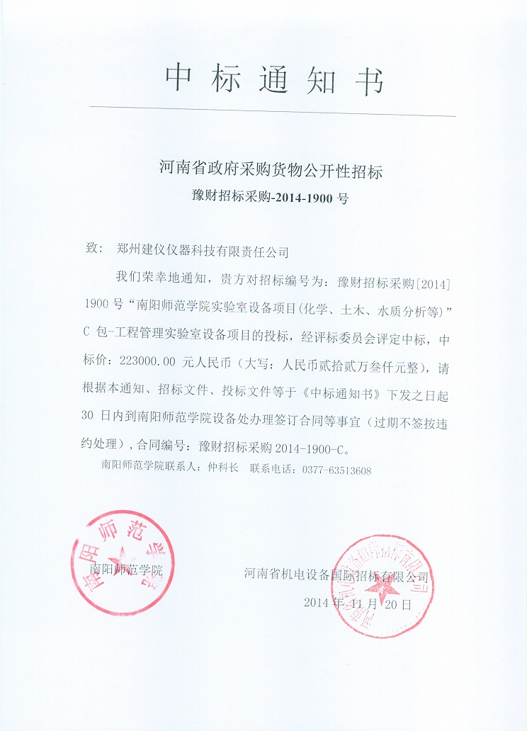 2014-1900中標(biāo)通知書